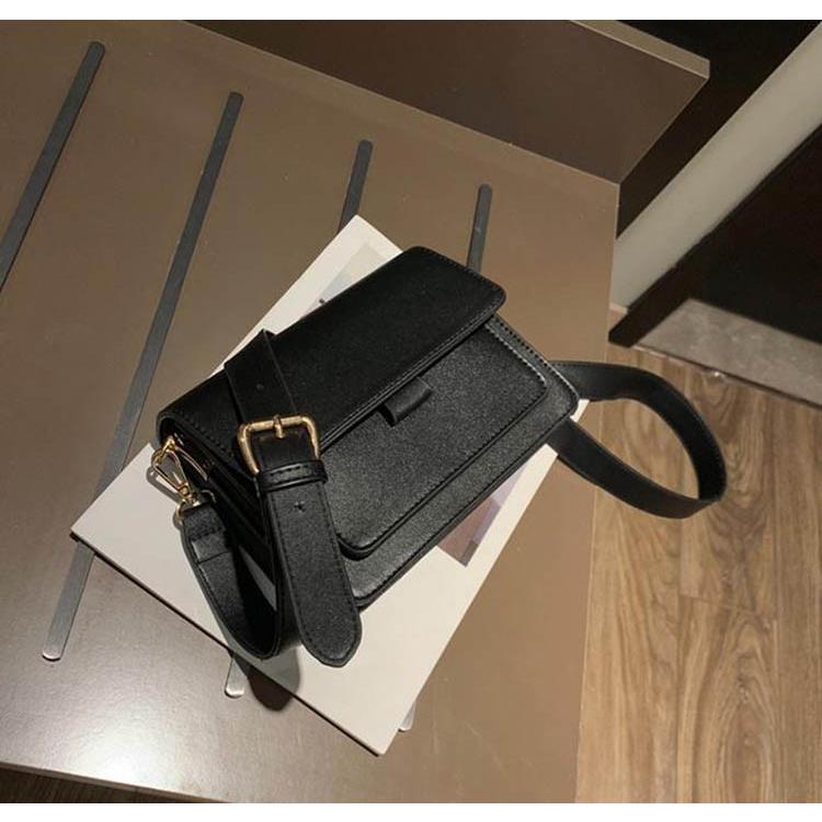 送料無料 おしゃれ見えバッグ レトロ ミニサイズ フェイクレザー ショルダーバッグ ベルトバックル スクエア型 Lamitte Deco トレンド 韓国ファッション ショップ